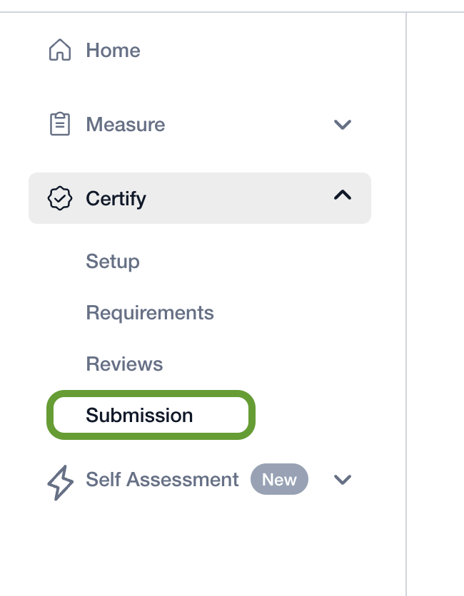 If you have finished your setup pages and are interested in moving forward with the audit, select the Submission page on the left sided menu and complete its requirements.