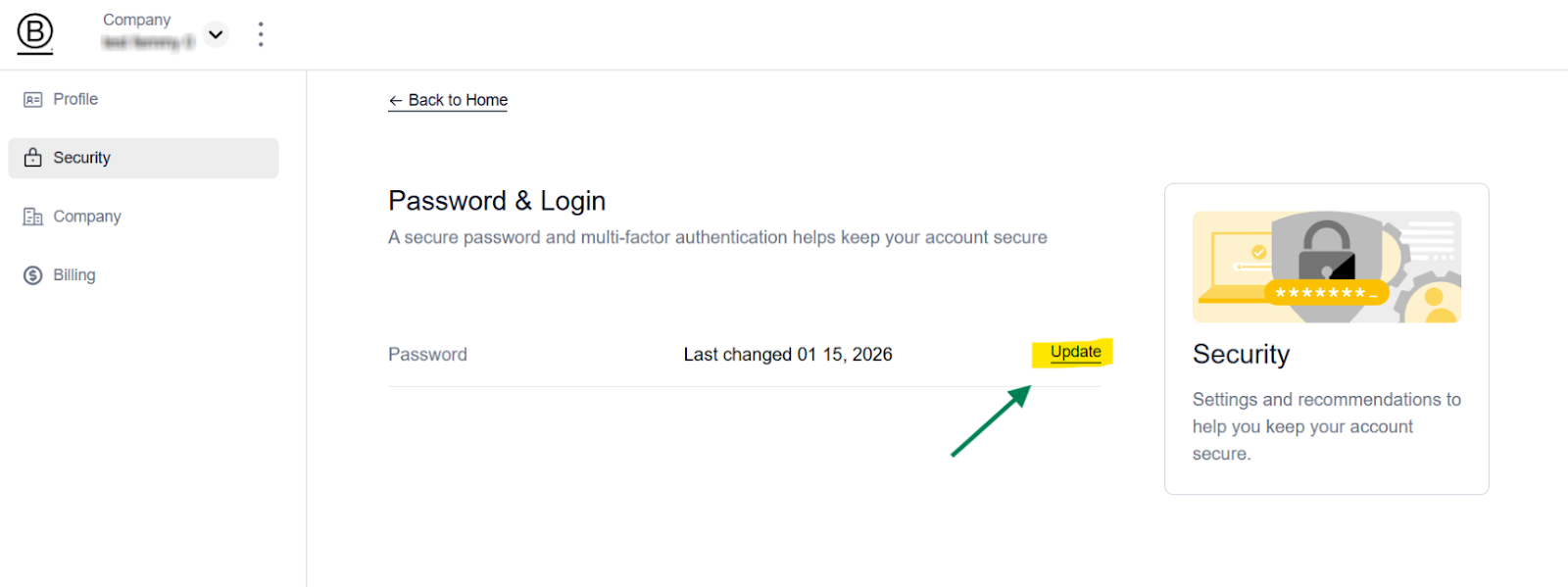 Step 3: Select the Profile tab on the left-hand menu. In the Security section on this page, you will find the option to Update your password.