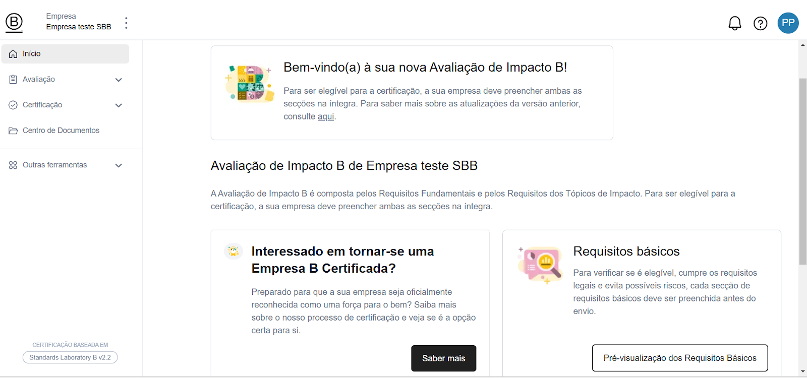Sua empresa poderá prosseguir para a Seção 4 da Configuração de Certificação, utilizando o B Impact como uma ferramenta gratuita para mensurar seu impacto.